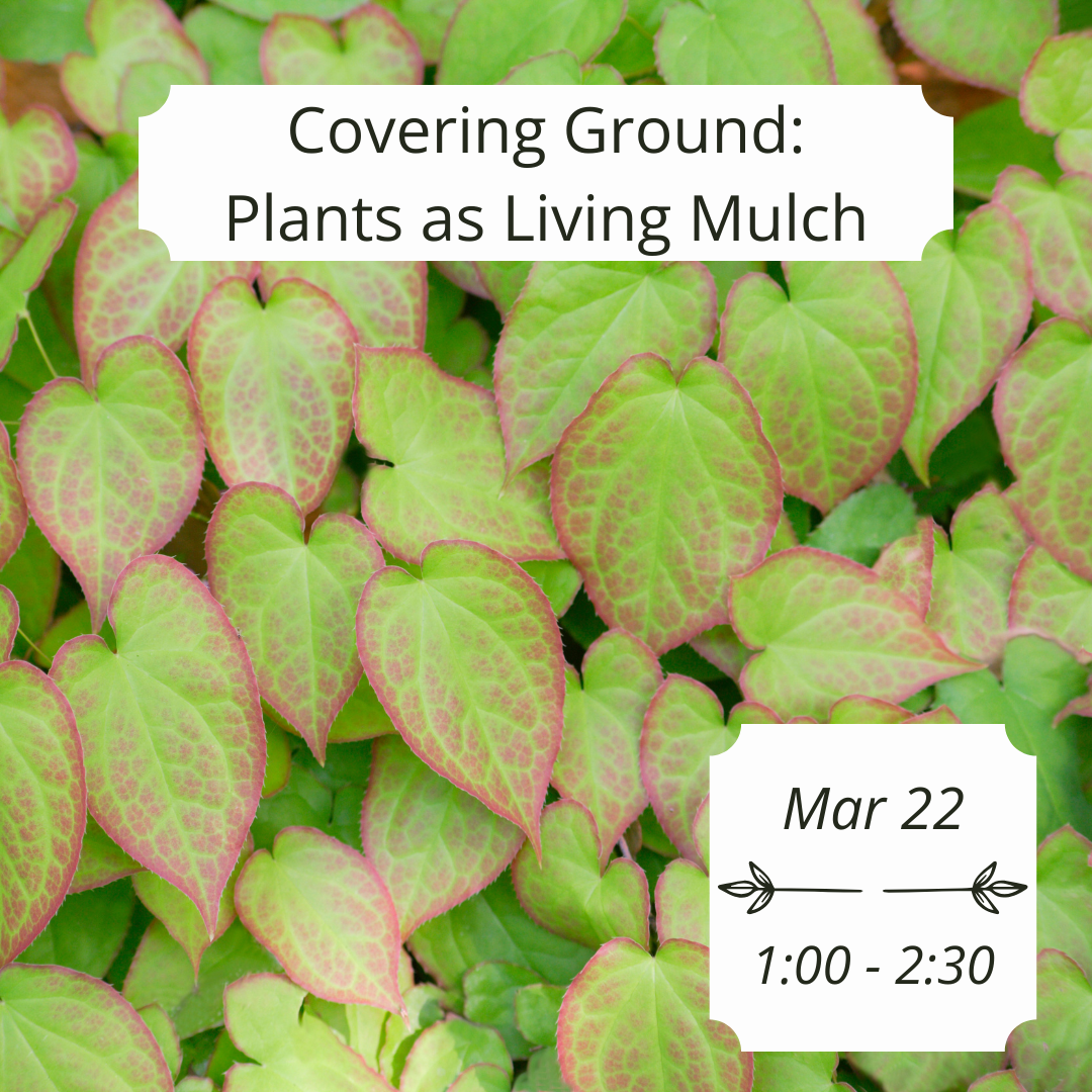 Nursery Manager Gordon will go over why we mulch, what counts as a groundcover with examples of options for a variety of conditions, and how to utilize groundcover plants in the landscape as a living mulch to enhance both beauty and the overall health of our outdoor spaces. Class fee $15, students will get a coupon for 20% off plants! To register call or Click Here.