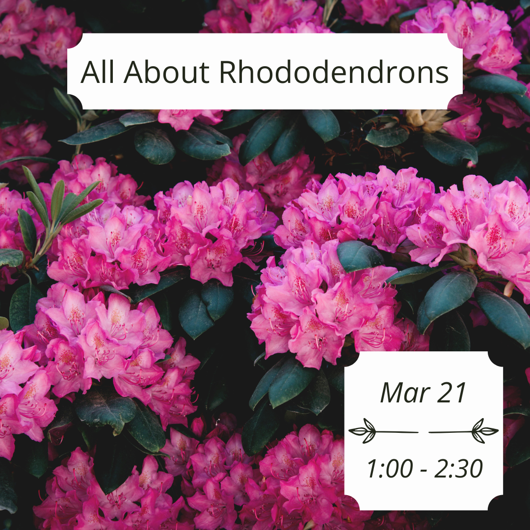 Horticulturist and rhodie expert Kristi O’Donnell will review planting, pruning, feeding and caring for rhododendrons and give a walk about the nursery to show and tell. Kristi moved to Whidbey Island to be the garden manager and then executive director of the Meerkerk Rhododendron Gardens in Greenbank in 1993-2011, from her position as assistant supervisor of horticulture for the City of Cincinnati Parks. Class fee $15, students will receive a coupon for 20% off plants! To register call or Click Here.